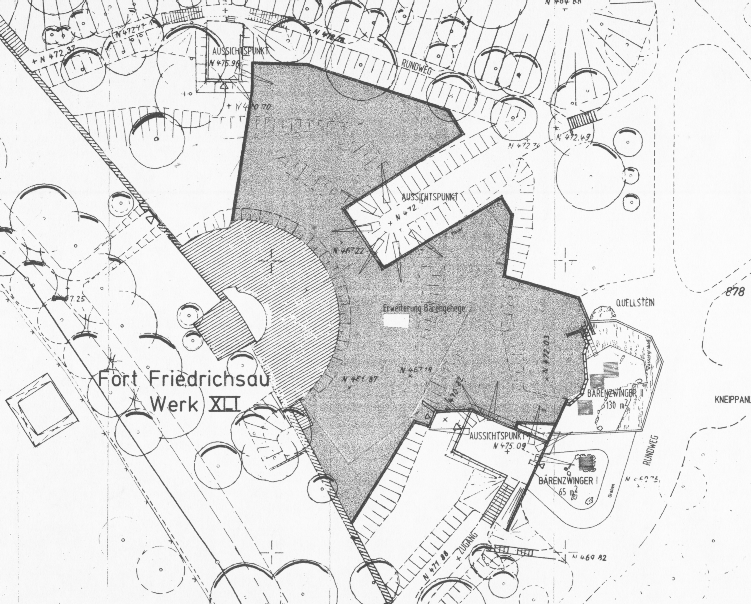 Zur Erweiterung bietet sich in idealer Weise das Gelände hinter der großen Betonmauer an: der Innenraum des Fort Friedrichsau an. Die Idee dazu ist schon alt.